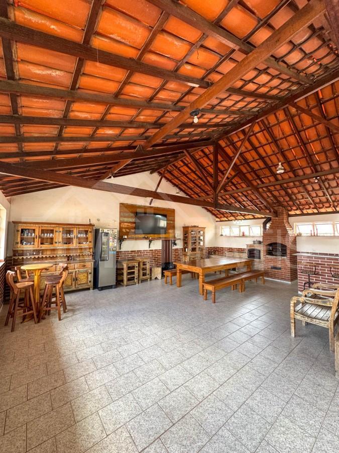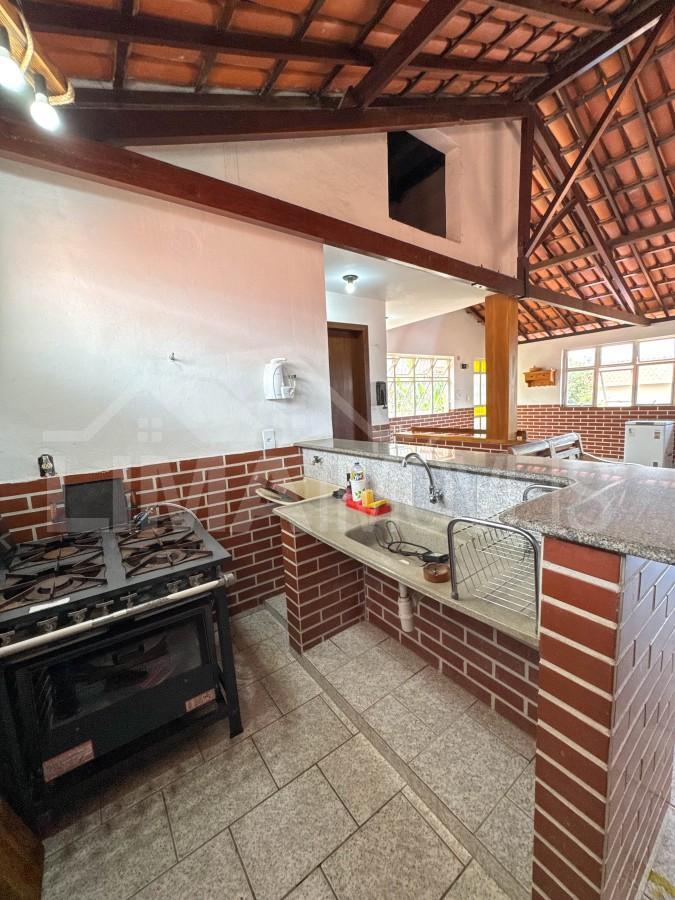 Espaço gourmet com ótimo espaço externo, coberto, fogão a lenha, móveis rústicos que podem ser negociados com a compra a parte. Banheiro de apoio.