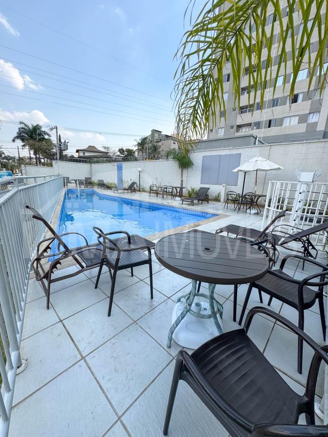No condomínio, você aproveita lazer completo: piscina, quadra poliesportiva, playground, sala de jogos, sala de estudos e espaço gourmet com churrasqueira. Além disso, conta com portaria 24h, elevador e total segurança.